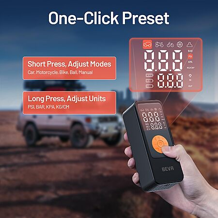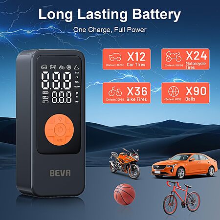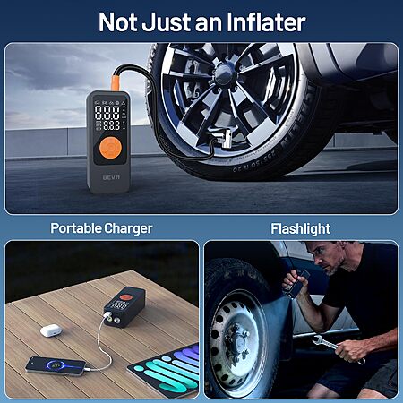 BEVA 150PSI Tire Inflator Portable Air Compressor, Cordless Tire Inflator with LED Light $14.99
