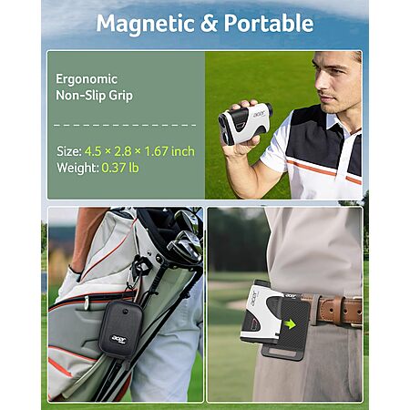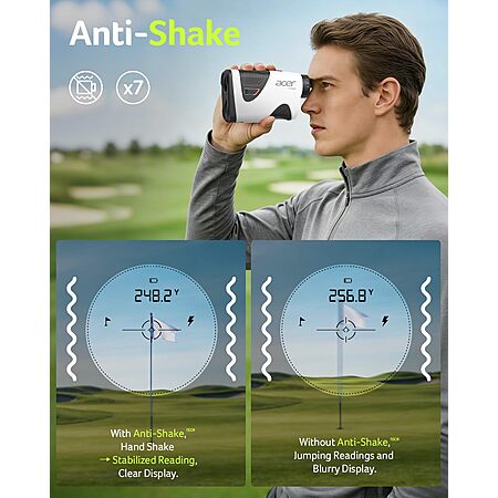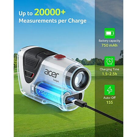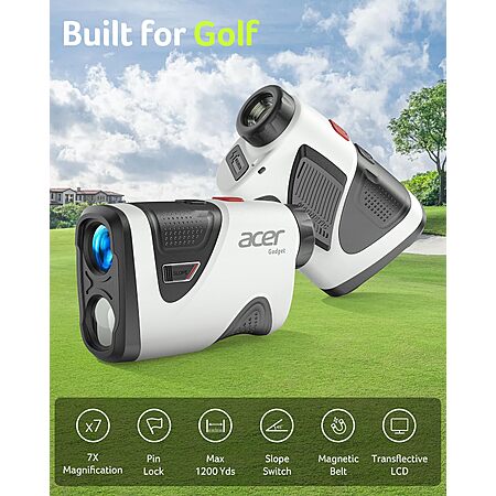 Acer Pro 1200 Yards Golf Rangefinder with Slope Switch, Pin Lock Vibration, 7X Magnification, Rechargeable Battery with Magnet Stripe, IP54 $74.99