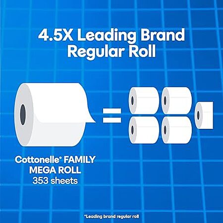 [SnS] $52.42 | 2 × 24-Pack 353-Sheets Cottonelle Toilet Paper Family Mega Rolls ($26.21 each) + $15 credit at Amazon