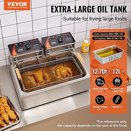 VEVOR Commercial 18 Qt Fryer with 3 Baskets $81.45 + Free Shipping