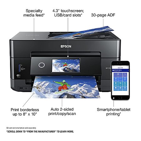Epson Expression Premium XP-7100 Wireless Color Photo Printer, Scanner and Copier & S041727 Premium Photo Paper, 68 lbs., High-Gloss, 4 x 6 (Pack of 100 Sheets) $159.88