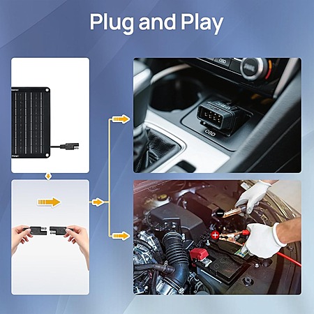 ECO-WORTHY 10W Solar Car Battery Charger Maintainer w/ OBD-II Cable on sale with code