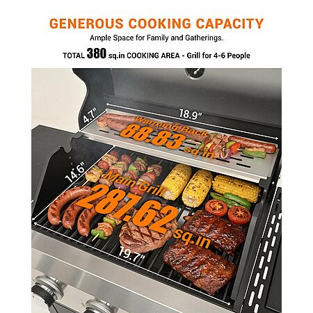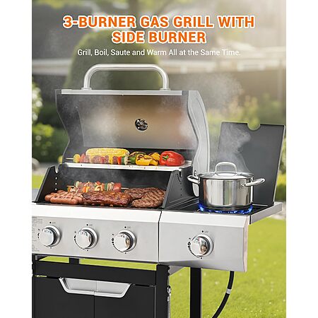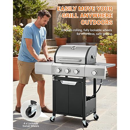 EUHOME 40,500 BTU 3-Burner Propane Gas Grill with Side Burner,Stainless Steel Outdoor BBQ Grill Portable with Wheels and Cast Iron Grates for Patio Garden Barbecue Cooking $279.99