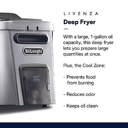 De’Longhi Livenza Deep Fryer with EasyClean System, Cool Zone, Adjustable Thermostat, Dishwasher-Safe Parts, Large Capacity, Easy Oil Draining, Stainless Steel $149.95 @Amazon