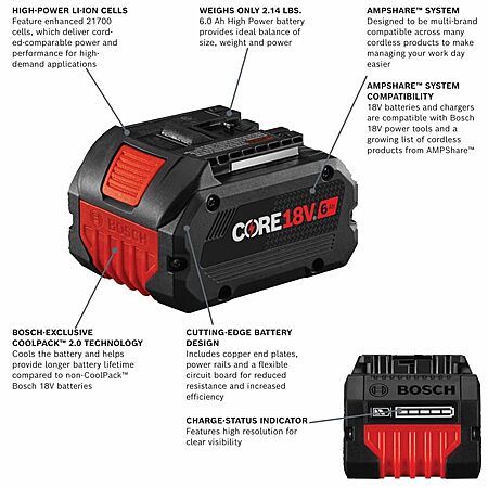 Bosch GXS18V-20N26 18V Starter Kit with (2) CORE18V® 6 Ah High Power Batteries and (1) 18V Fast Battery Charger $212.79 @Amazon