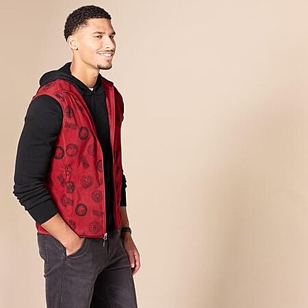 Model: Amazon Essentials Disney | Marvel | Star Wars Men's Polar Fleece Vests, Marvel Logo, X-Small