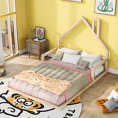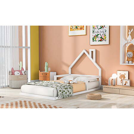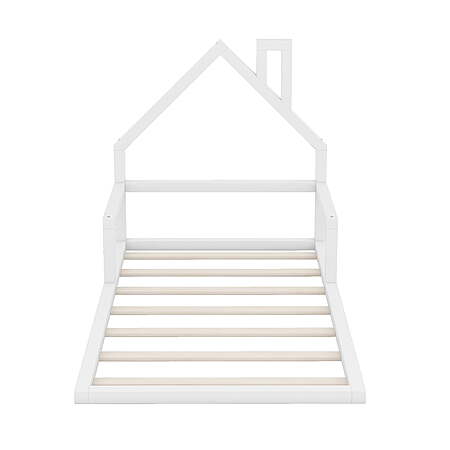 Featuring a house like roof and chimney, this bed doubles as a semi-enclosed play place perfect for kids to study, watch TV or explore their imaginations. With guardrail and a sturdy pine frame, this bed offers a safe space for your kids to get a good night’s sleep. A choice of two colors, suitable for different decoration styles. If you are choosing a simple and elegant house bed, this will be the best choice. Low profile design will be easy and safe for you little one to enter. Features: [Play House in Kids Room]: Kids house bed featuring house-shaped headboard and a small chimney, which are relatively popular among children. This house bed is a mini house in kids room which creates a fun and adorable space that not only serves as a cosy sleeping area but also double as a playhouse. [Solid Wood Frame]: This house bed for kids was carefully crafted with solid pine wood and MDF, making it durable and sturdy. Slats are included so you can put your mattress on it, which allow your kids to jump and bounce on the bed with low profile design. [Safety Sleeping Environment]: Thanks to house shape, kids will have adequate sense of security. This kids bed frame features low height which allow your kids get in or out easily. Sweet dream and amazing day started with our fun kids bed. [Easy to Assemble]: All the parts and tools needed will be packed in the package. The instruction and the accessories are also included in the package. Just follow the instruction, and then you will get your own bed. Specification: Size: Twin/Full Twin Bed Product Dimension: 78"L*41.7"W*39.2"H Full Bed Product Dimension: 78"L*53.9"W*46.7"H Twin Bed Inner Size: 75"x 39" Full Bed Inner Size: 75"x 53.9" Twin/Full Overall Product Weight: 21lb/28lb Twin/Full Bed Weight Capacity: 250lb/400lb Mattress Included: No Assembly Required: Yes Recommend Bed Mattress Thickness: 6-8''