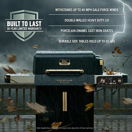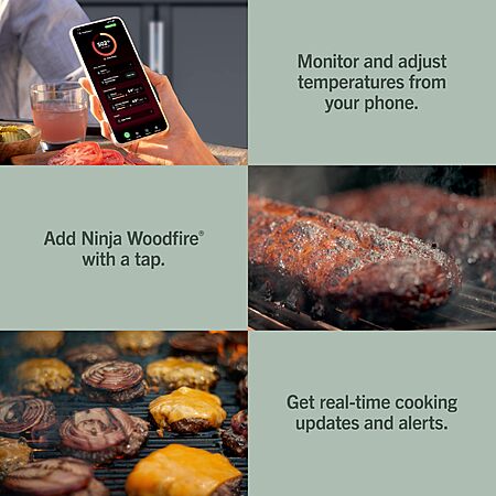 Ninja FlexFlame ProConnect Grill & Smoker | 5-in-1 Smart Cooking System | Electric & Propane | App-Connected Black/Gold | PG305 $1099
