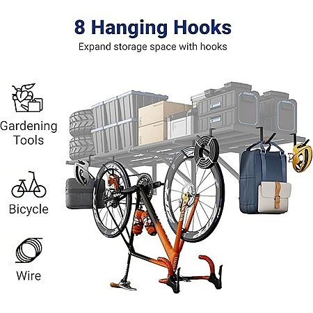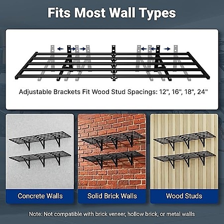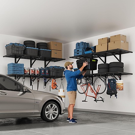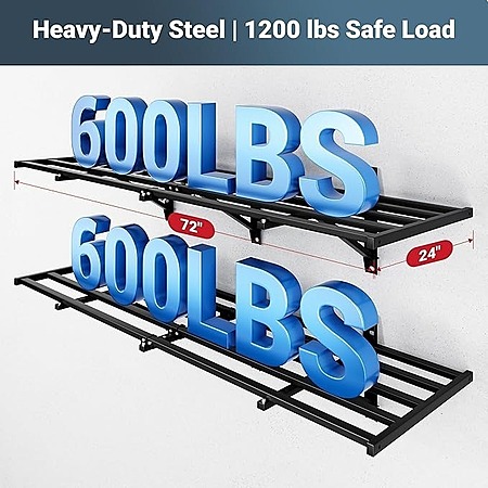 FLEXIMOUNTS 2-Pack 2x6ft Heavy Duty Garage Wall Shelving w/ 8 Hooks, 1200lbs Capacity $113.99 + Free Shipping