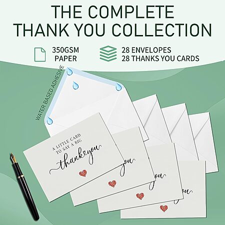 28-Pack Thank You Cards w/ Envelopes (various, Standard Size) $5.99 + Free Shipping w/ Prime or on $35+