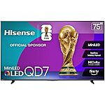 Model: Hisense 75" Class QD7 Series Mini-LED 4K UHD Smart Fire TV (75QD7QF, 2025 Model) - QLED, Native 144hz, HDR10+, Dolby Vision, Dolby Atmos, Game Mode Pro, ALLM, Alexa Built in with Voice Remote, Black