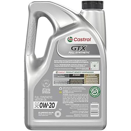 [SnS] $19.35* | 5-Qt Castrol GTX Full Synthetic 0W-20 Motor Oil at Amazon