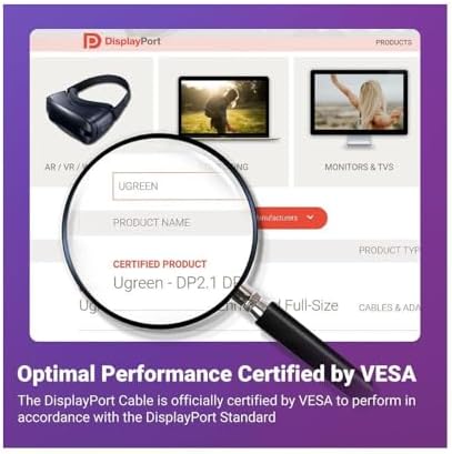 Model: UGREEN 16K 6.6FT DisplayPort Cable 2.1 [VESA Certified] DP2.1 40Gbps Support 8K@240Hz 4K@240Hz HDR, HDCP, DSC 1.2a, Braided Display Port Cable Cord Compatible FreeSync G-Sync Video Card Monitor
