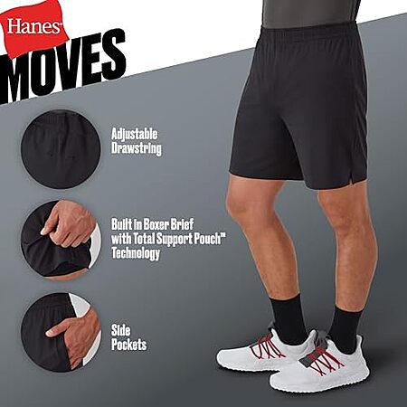 $4.91 | Hanes Men's Moves Workout Shorts with Boxer Brief Liner & Total Support Pouch, Moisture-Wicking Shorts, 7” Inseam at Amazon