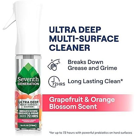 Model: Seventh Generation Ultra Deep Probiotic Multi Surface Cleaner, 9.4 Fl Oz, Grapefruit & Orange, 80% USDA Biobased All Purpose Cleaning Spray, Breaks Down Tough Grease & Grime, Safe for Kids & Pets
