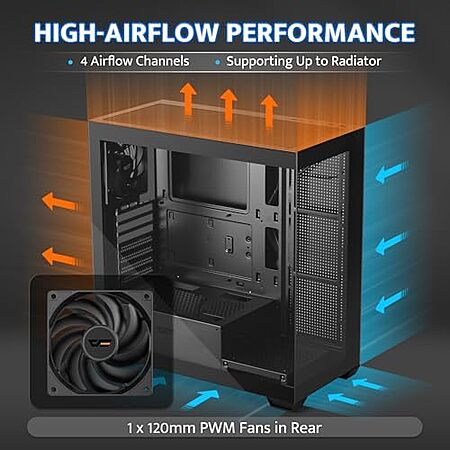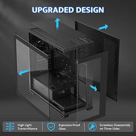 Model: darkFlash ATX Mid-Tower PC Case, Pre-Install 1 Non-LED PWM Fans Computer Case, Full View Dual Tempered Glass Gaming PC Case, Type C Port, Supports up to 360mm Water Cooling Radiator, Black(DS900)