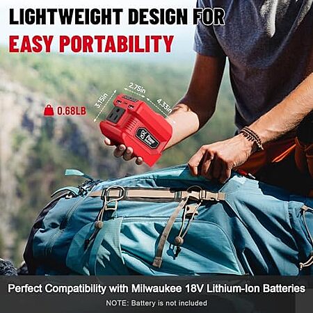 $27.99* | Azocek 220W/18V Battery Power Inverter Power Station w/ 400LM LED Work Light (Red) at Amazon