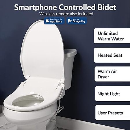 $227.99 | Bio Bidet BB1200 Elongated Smart Bidet, Warm Water Wash, Heated Seat & Dryer, App & Remote Control at Amazon