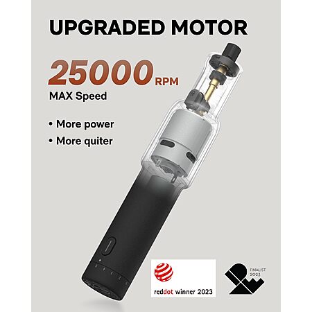 - Compact, Ergonomic Design with Premium Look & Feel: Designed with a slim, well-balanced body for comfortable one-hand control. The compact form factor reduces hand fatigue during detailed work, while the refined finish and minimalist design stand out from bulky, industrial-looking rotary tools.