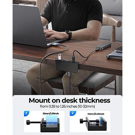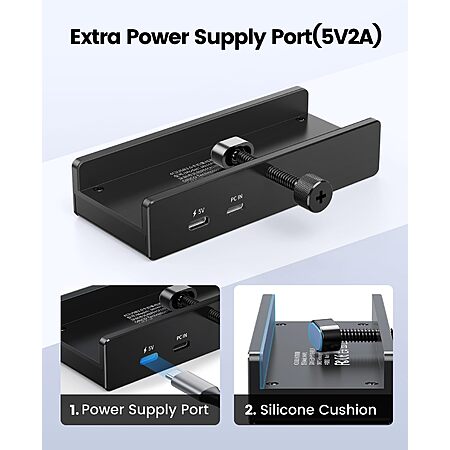 - New Clampable Hub Design: ORICO mountable usb hub designed with adjustable screw allow you to mount monitor screen edge or desk edge thickness from 0.19 to 1.1 inches (5-28mm), It can be firmly fixed on the edge of the desktop or monitor for a semi-permanent mount, and will not shake or move when plugged in or out.The parts in contact with the desktop or monitor are covered with soft silicone pads to avoid scratches.