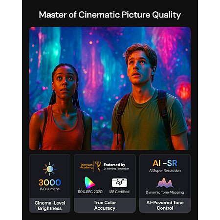 Valerion VisionMaster Pro2 Triple Laser Projector 4K, 3000 ISO Lumens, HDR10+, GTV, 4ms Lag-Free Gaming $2399