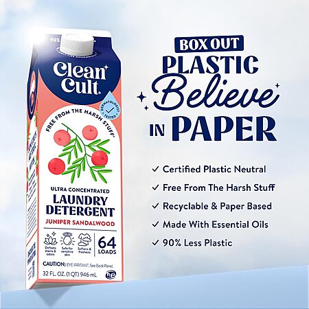 [Prime] 32-Oz Clean Cult Liquid Laundry Detergent (Fragrance Free or Juniper Sandalwood) $6.64 w/ S&S + Free Shipping w/ Prime or on $35+