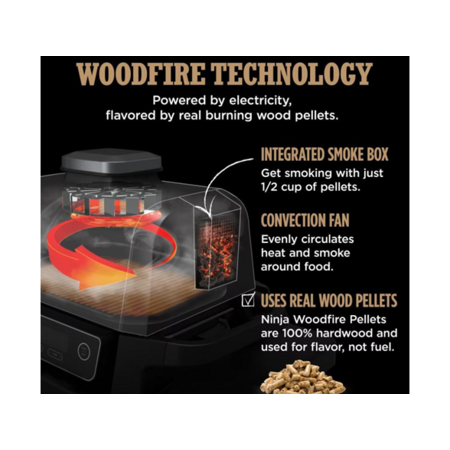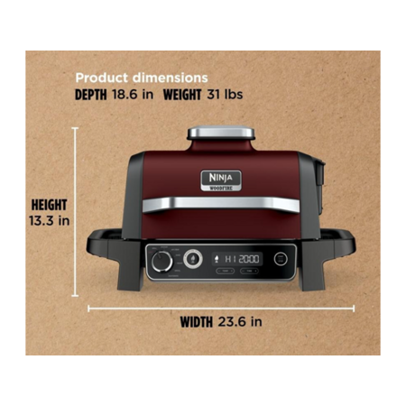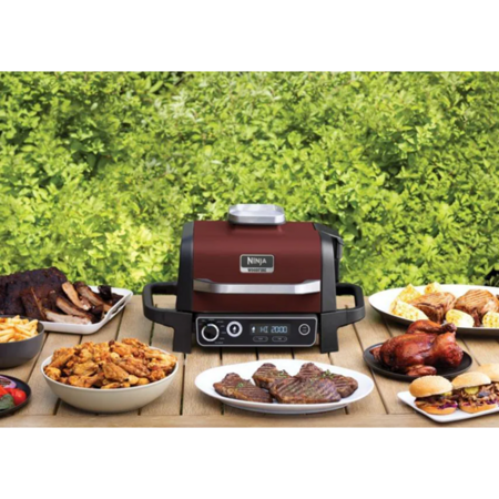 • Meet the Ninja Woodfire Outdoor Grill in Red. Master Grill, Foolproof BBQ Smoker, & Air Fryer all in one with 100% real authentic woodfire flavor. With Woodfire Technology, easily create rich, fully developed woodfire flavor for anything you make.