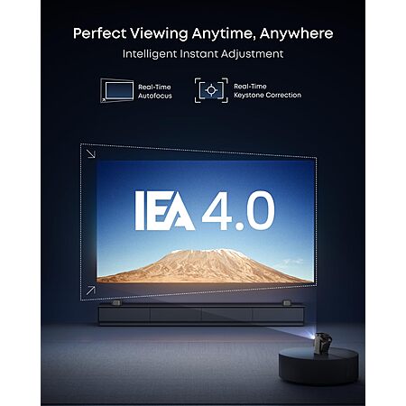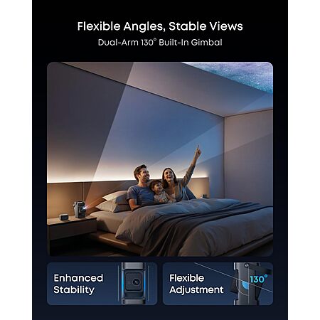 Effortless Viewing with Instant Adjustment: With real-time autofocus and keystone correction, pictures are perfectly aligned even when moved. Dual-arm 130° built-in gimbal enables flexible angle adjustment with enhanced stability for shake-free images.