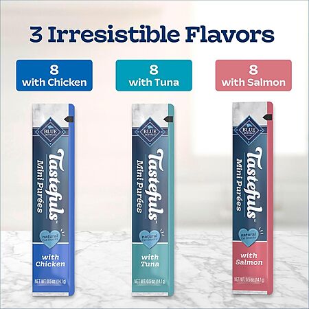 Blue Buffalo Tastefuls Mini Purées (like CHURU), Adult Cat 72-Count Variety Pack Chicken, Tuna, and Salmon 0.5 oz. 72 ct (3 x 24) $24.25 S&S/MULTIBUY