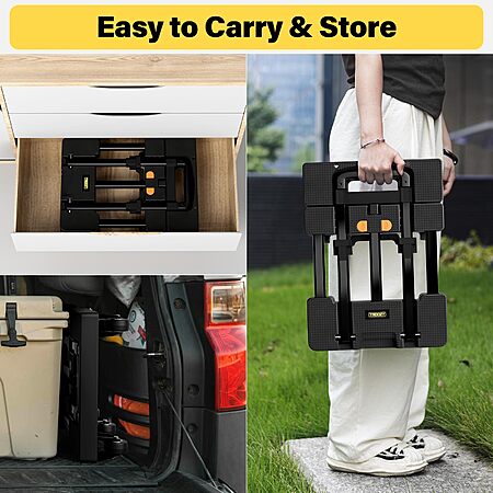 Amazon.com has Folding Hand Truck 500 LB, Portable Heavy Duty Dolly Cart with 4 Wheels (2 with Brake) & Extendable 26" Plate, Collapsible Luggage Trolley with 2 Elastic Straps for Travel, Moving, Camping on sale for $24.21.