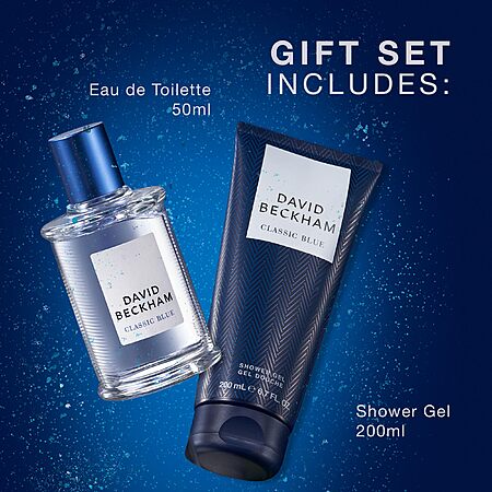 - David Beckham Fragrances presents the David Beckham Classic Blue shower gel and Eau de Toilette gift set, featuring a timeless fragrance with a fresh twist. Wear it effortlessly day or evening.