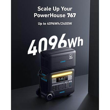 - Double the Power to 4096Wh: Use 760 Expansion Battery (2048Wh) with Anker PowerHouse 767 (2048Wh) and scale up the battery capacity to 4096Wh.