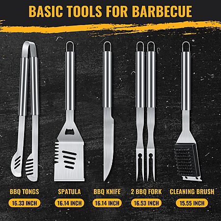 Model: BBQ Grilling Accessories, 16-Inch Stainless Steel BBQ Grill Tools Set for Men, Heavy Duty Grilling Accessories Kit for Camping, Kitchen, Extra Thick Barbecue Utensil