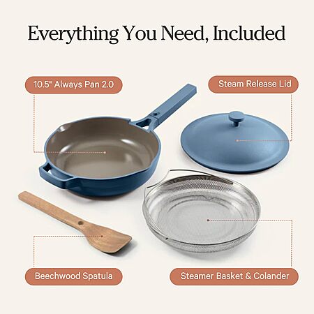 Our Place Always Pan 2.0-10.5” (2.6 Qt) Nonstick, Toxin-Free Ceramic Cookware Blue Salt $89