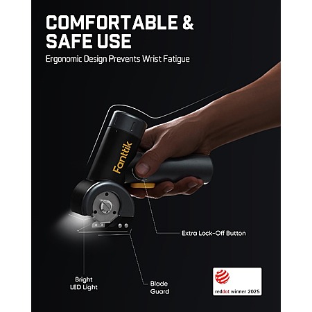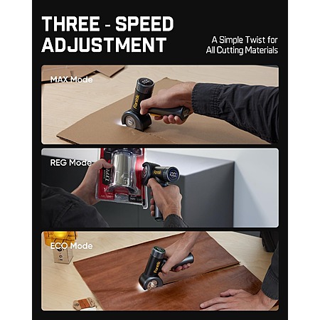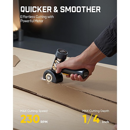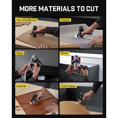 Cordless quick cutter: 230 RPM high-speed motor for cutting materials like cardboard, carpets, leather, and more.