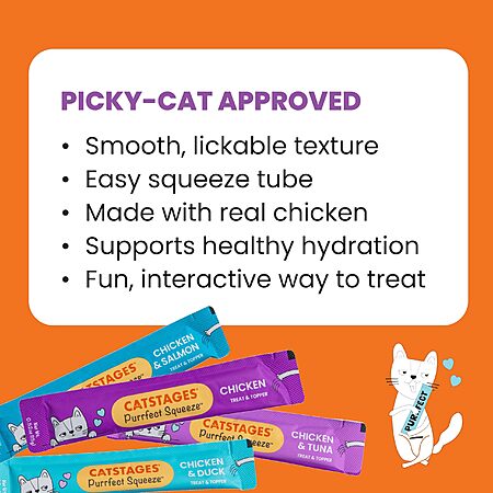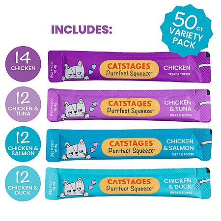 50-Count 0.5-Oz Catstages Purrfect Squeeze Lickable Cat Treats (4-Flavor Variety Pack) for $23.99 - 5% when you checkout with Subscribe & Save =
