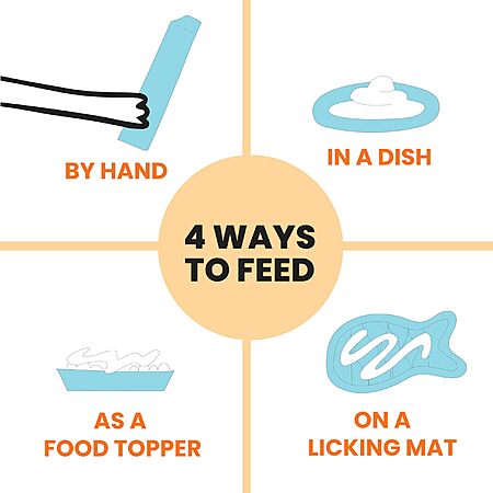 - Serve by hand for bonding, squeeze into a dish, drizzle as a food topper, or spread on a lick mat for enrichment