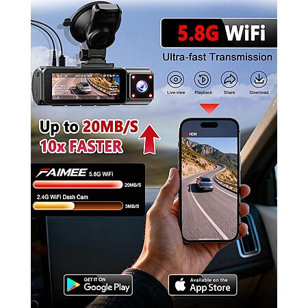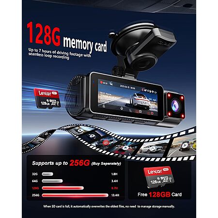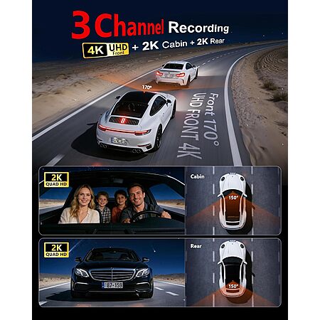 FAIMEE 3-Channel Dual-WiFi Dash Cam (4K Front + 2K Rear & Cabin) w/ GPS & 128GB Card $50.99 + Free Shipping