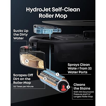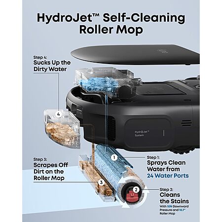 Model: eufy Robot Vacuum C28, HydroJet™ Self-Cleaning Roller Mop, DuoSpiral™ Detangle Brush, 15,000 Pa Turbo High Suction, 5-in-1 Robot Vacuum and AI Obstacle Avoidance