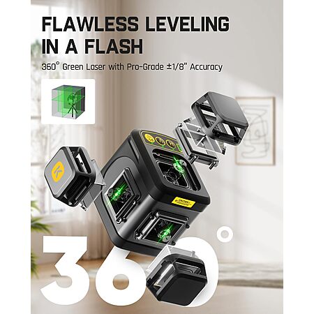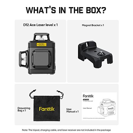 Model: Fanttik D12 Ace Laser Level 360 Self Leveling, 3x360° Rechargeable 3D Green Cross Laser, Outdoor Pulse Mode, IP54 Durable, Easy to Use for Construction and Picture Hanging