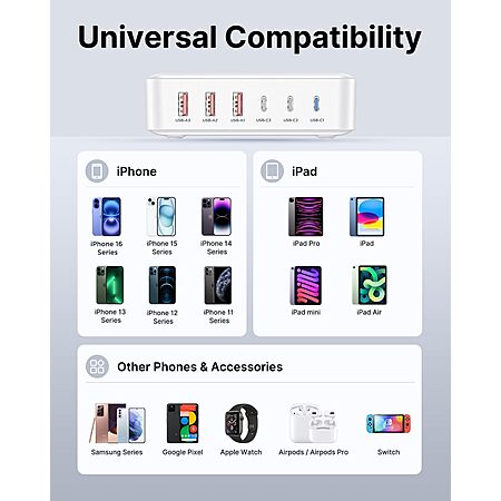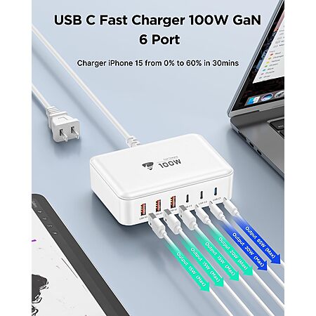 5-ft Aiminu 100W USB C 6-Ports Multi-Device Fast Charging Block Station $9.97 + Free Shipping w/ Prime or on $35+