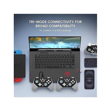 Tri-Mode Connectivity: Works with PC, Switch, Android, and iOS via Bluetooth, wired, and wireless dongle. Easily switch between modes for seamless multi-platform gaming.