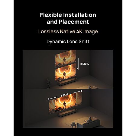 Lossless Optics: Flexible lens shift and optical zoom give you more freedom in setup—without sacrificing clarity. Enjoy crisp, distortion-free visuals at any size, from any angle.