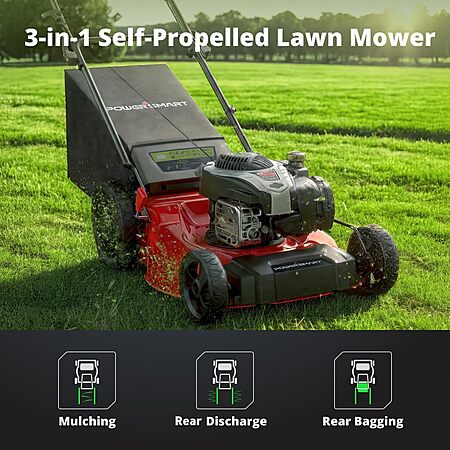PowerSmart 21" B&S Engine 140cc Self-Propelled Lawn Mower – Durable Steel Deck, 6-Height Adjustments, 3-in-1 Mulching Versatility on sale for