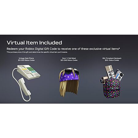 - Every Roblox Gift Card grants a free virtual item upon redemption.