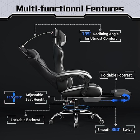 Yaheetech Gaming Chair w/ Massage Lumbar Support, Footrest & Recline (Black/White) $77.39 + Free Shipping