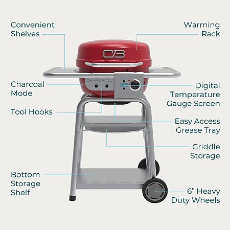 Model: Bistro Pro Electric Grill & Griddle + Charcoal Mode, Red - 25302146