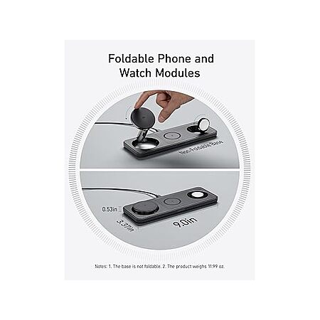 - Adjustable and Space-Saving: Featuring a slim, space-efficient design with a phone module that adjusts from 90° to 180°, catering to both your Apple Watch and iPhone.