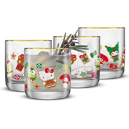 JoyJolt Hello Kitty and Friends Short Glasses, Set of 4, 10oz (Winter Wonderland or Hello Kitty and Gingerbread) - $11