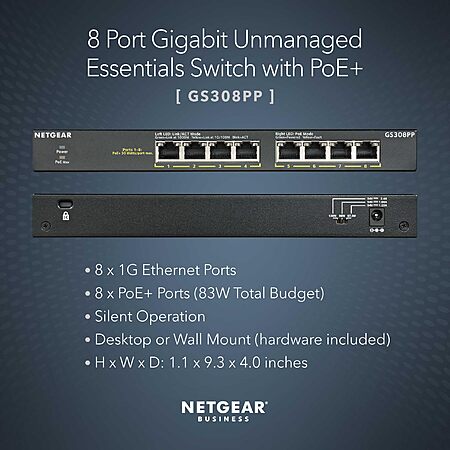 NETGEAR 8-Port PoE+ Gigabit Ethernet Unmanaged Essentials Switch (GS308PP) $59.98 + Free Shipping